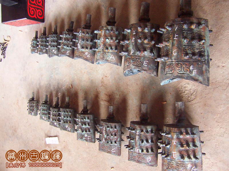 16件晉侯穌青銅編鐘,是我公司董事長、工藝美術(shù)大師王蒲琴女士根據(jù)晉侯穌編鐘設(shè)計制作,編鐘外形按照晉侯穌編鐘設(shè)計制作,編鐘為青銅鑄造,采用國際標(biāo)準(zhǔn)樂音音高A=440Hz調(diào)音,可以旋宮轉(zhuǎn)調(diào)演奏古今中外樂曲,編鐘大梁采用優(yōu)質(zhì)松木制作,表面噴漆,彩繪花紋;另配有保管編鐘用的木箱,便于運輸和儲存。
